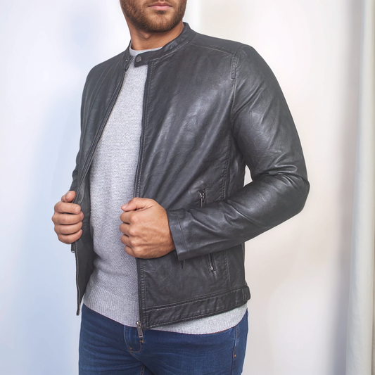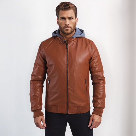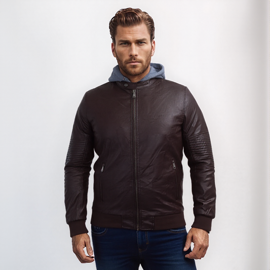 Blouson Simili Cuir - Capuche Amovible - Noir