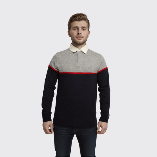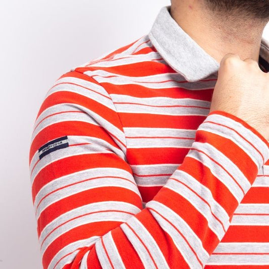 Polo Manches Longue à Rayures - Rouge/gris