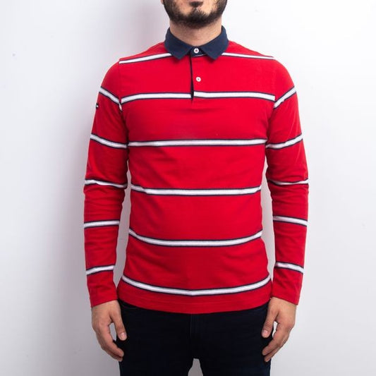 Polo Manches Longues à Rayures - Rouge
