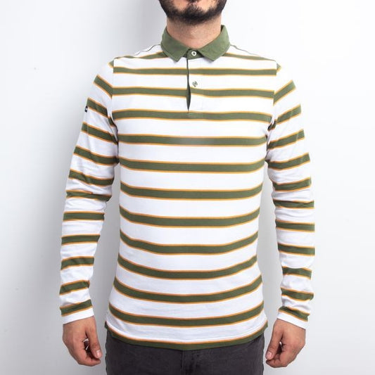 Polo Manches Longues à Rayures - Blanc/vert