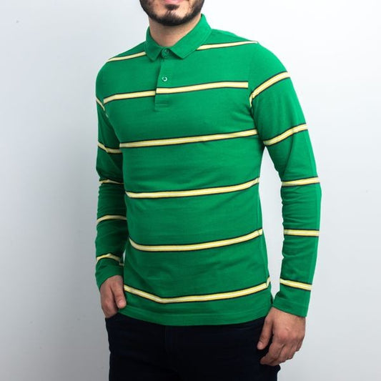 Polo Manches Longues à Rayures - Vert
