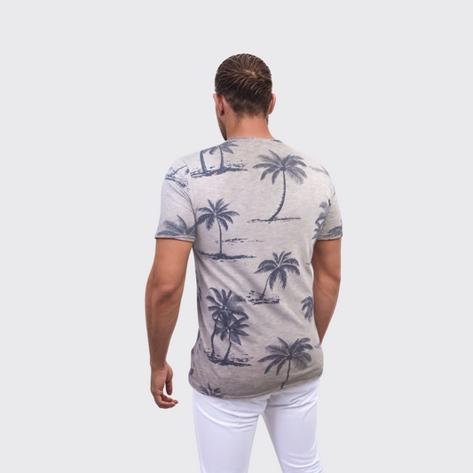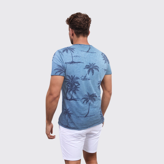 T-shirt à Motif Feuille De Palme - Bleu Ciel