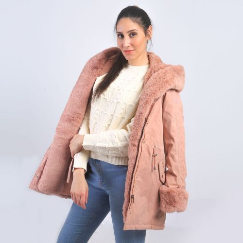 Maps Vestes Longue À Capuche En Fourrure - Noir